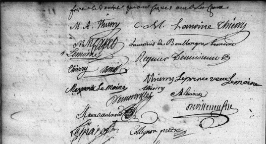 Madame Thierry was born Cécile Marguerite Lemoine de Boullongne in Clermont, north of Paris, in 1734. She was a cousin of the famous artist Bon Boullongne, but her own family had a long history of serving the French royal family. Her father and both grandfathers were, respectively, valet, forestry official and architect du roi to Louis XV. There was no question she would enter the world of royal servitude, which she did in 1753 as a femme de chambre for Marie Leczinska, the Polish born queen of Louis XV. Her aunt, Marguerite Lemoine, was already in the service of the queen.